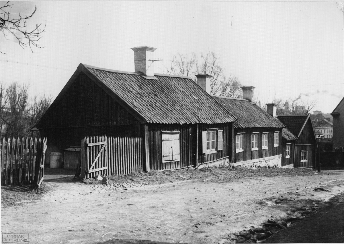 Trähus längs Kvastmakarebacken på Södermalm, Stockholm.