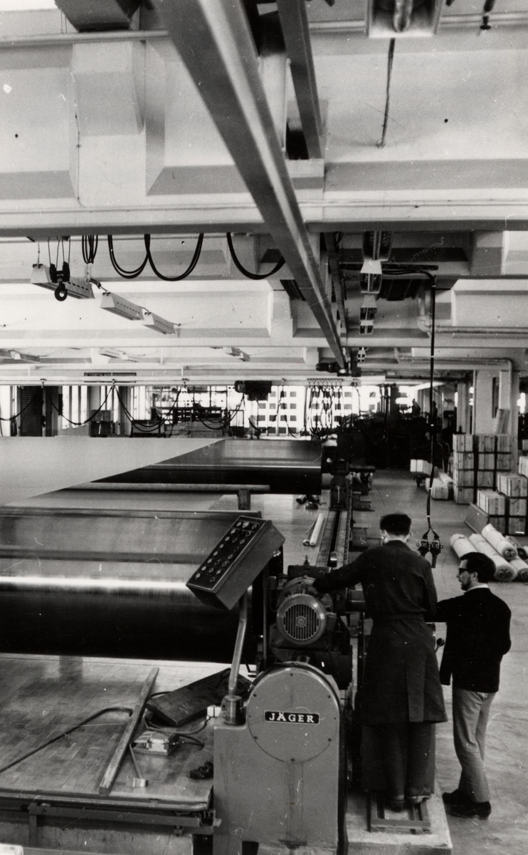 Stor sträckbänk (Stora Jäger). Personer på bilden: Pentti Salo och Sune Lindahl från Mariannelund.