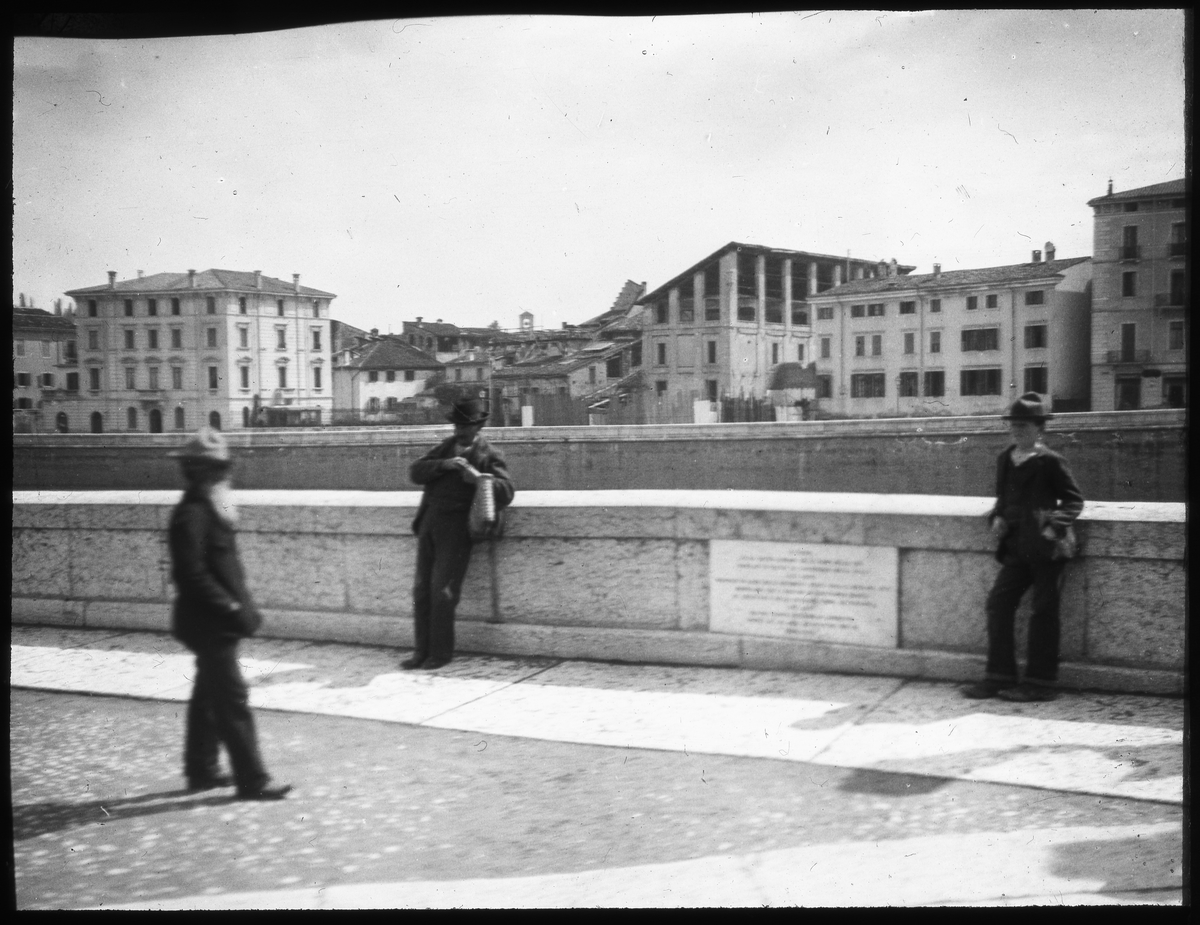 Skioptikonbild från institutionen för fotografi vid Kungliga Tekniska Högskolan.Flanörer i staden Florens. Bilden är troligen tagen av John Hertzberg under en resa i Europa.