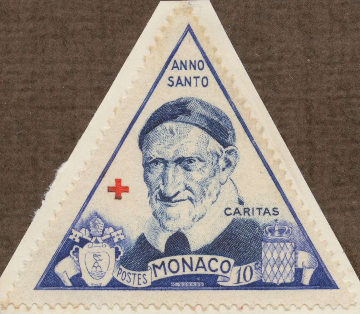 Frimärke från Monaco, 1951. Motiv av Monacos Vapen Det heliga året 1951 -St. Vincent de Paul-