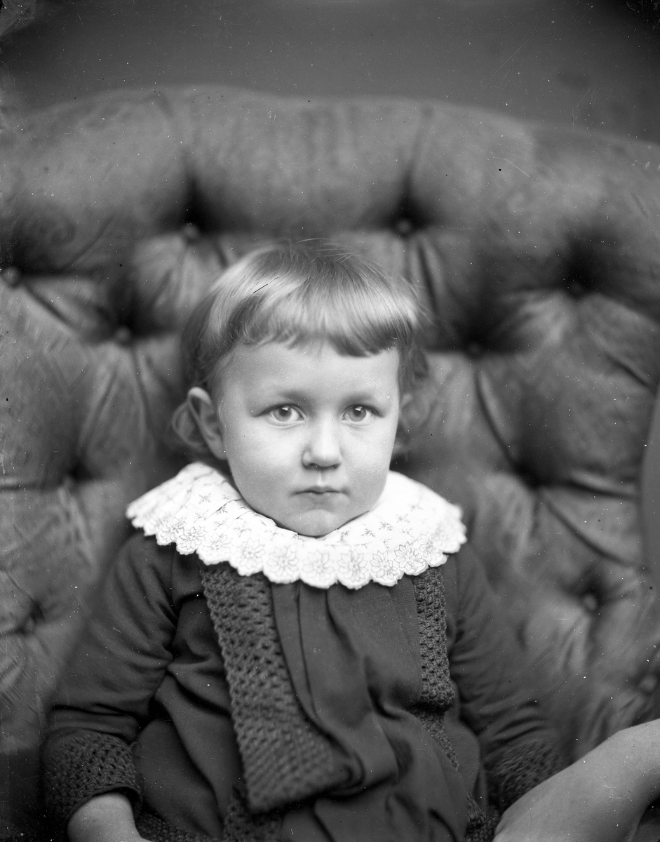 Barn i kolt och spetskrage. Ateljéfoto, 1890-tal.
