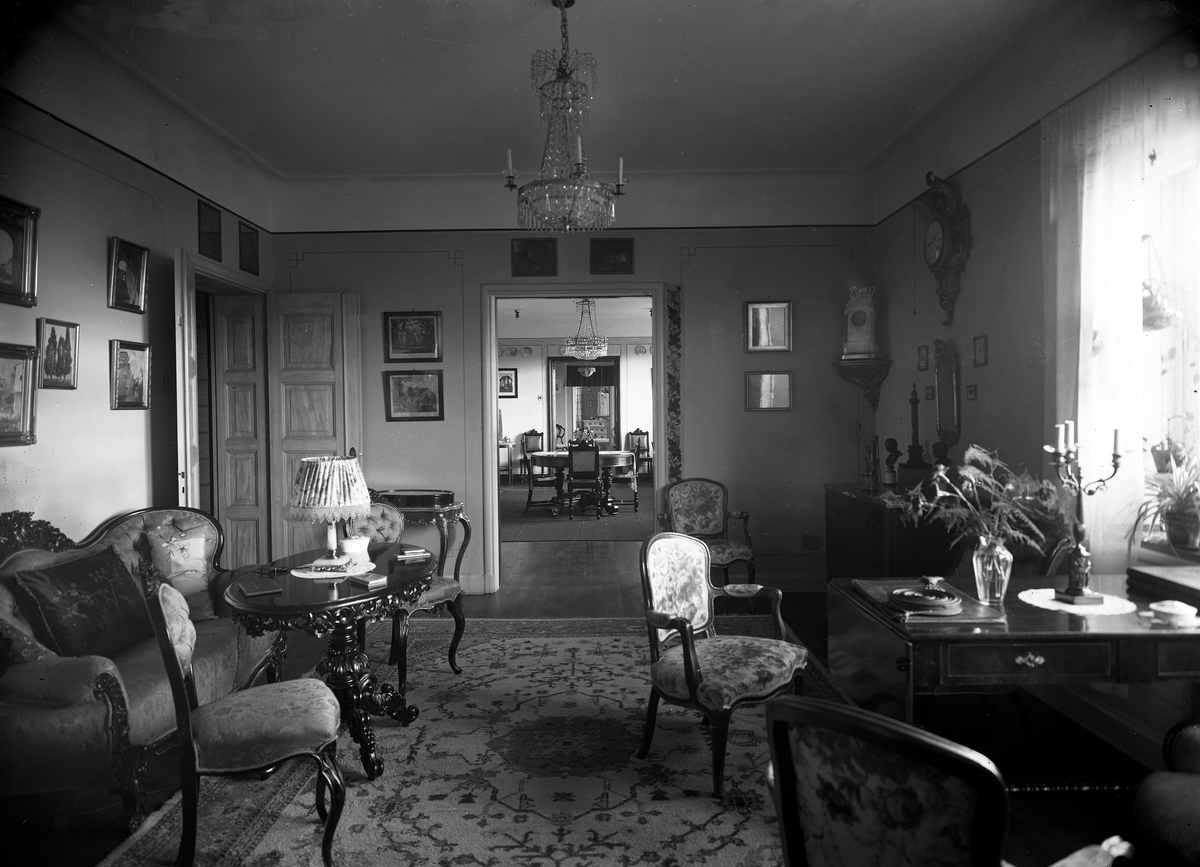 Häradshövding Tor Ahlströms hem på Trädgårdsgatan 14 i Växjö. Interiör av salong.