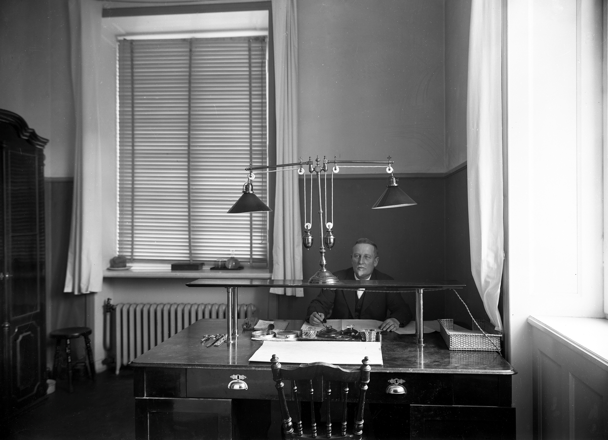 Man på kontor, troligen Postverket, i post- och riksbankshuset.