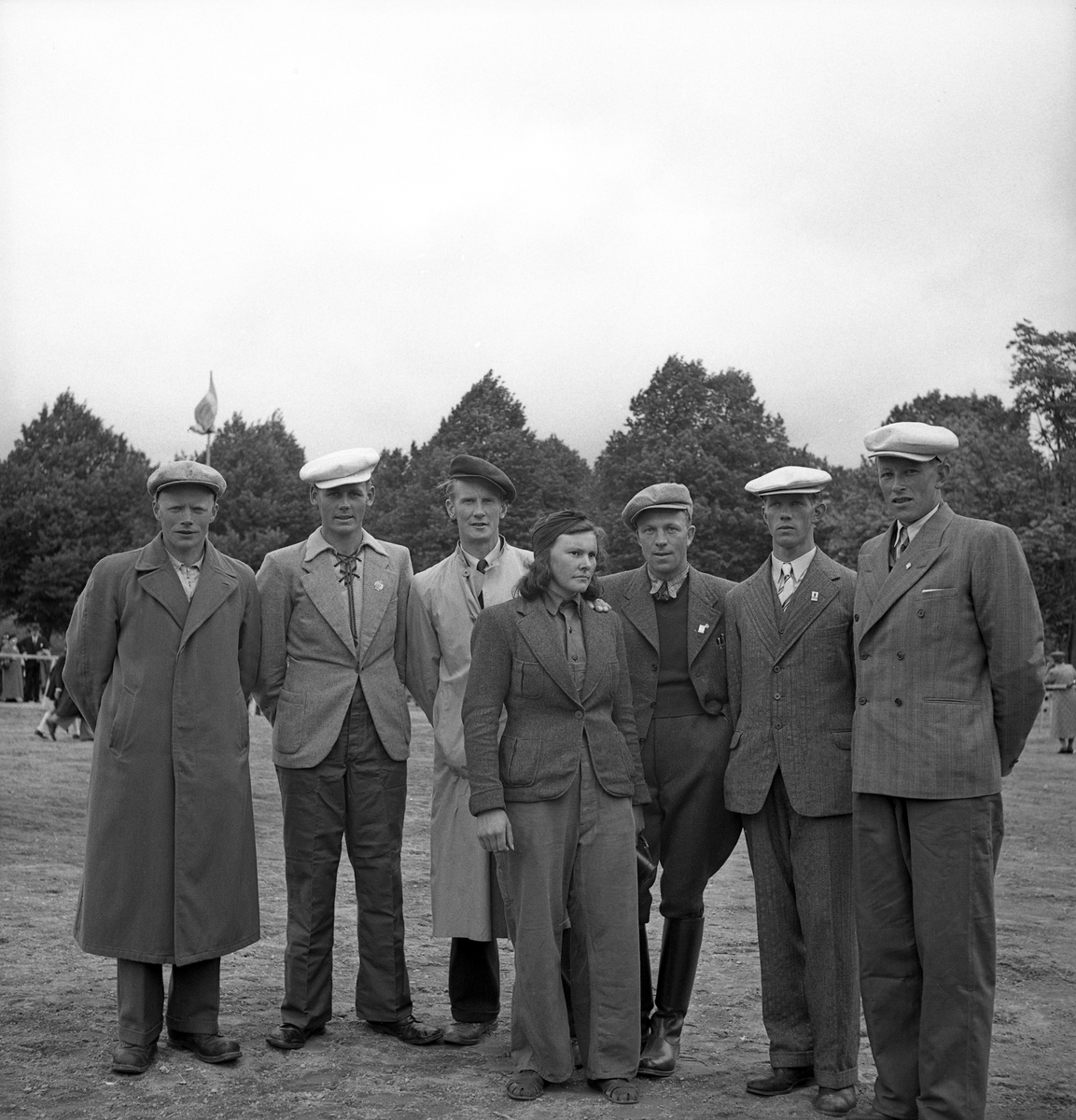 Ett antal karlar och en kvinna (pristagare ?) har ställt upp sig för