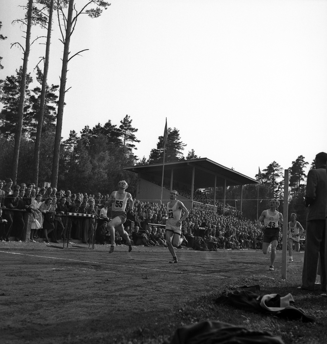 Idrottens dag på Värendsvallen. Löpare vid målsnöret.