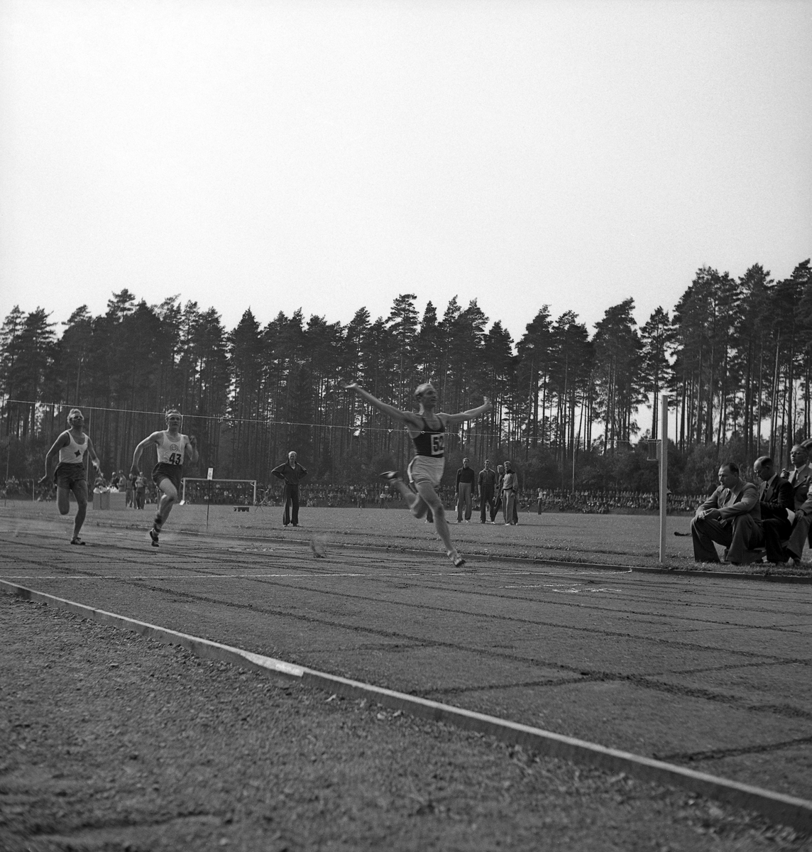 Idrottens dag på Värendsvallen. Löpare vid målsnöret.