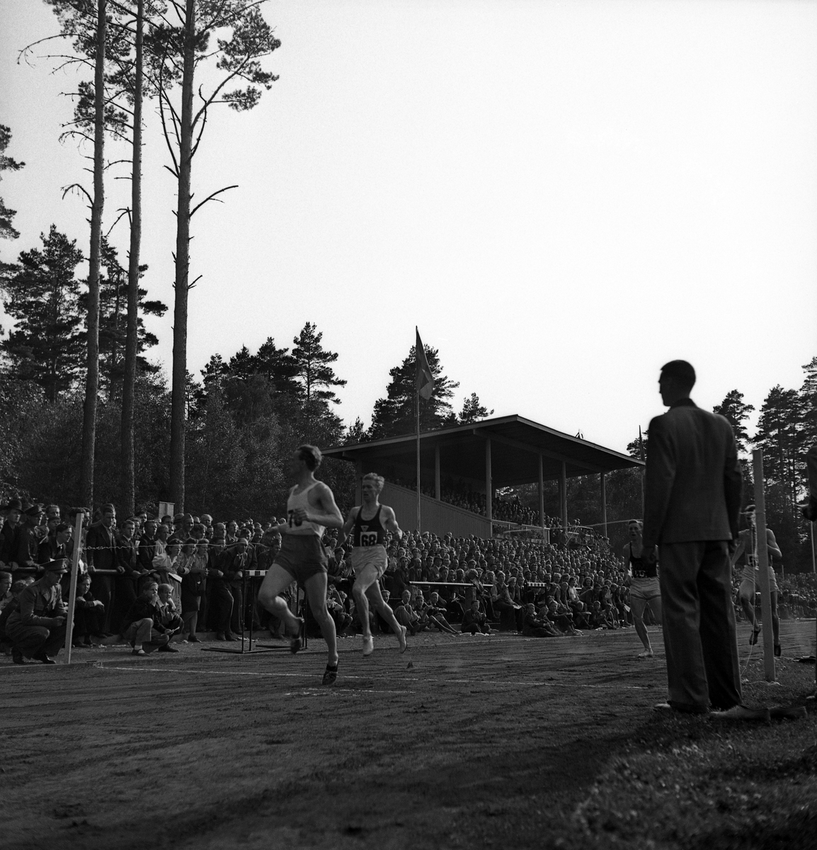Idrottens dag på Värendsvallen. Löpare vid målsnöret.