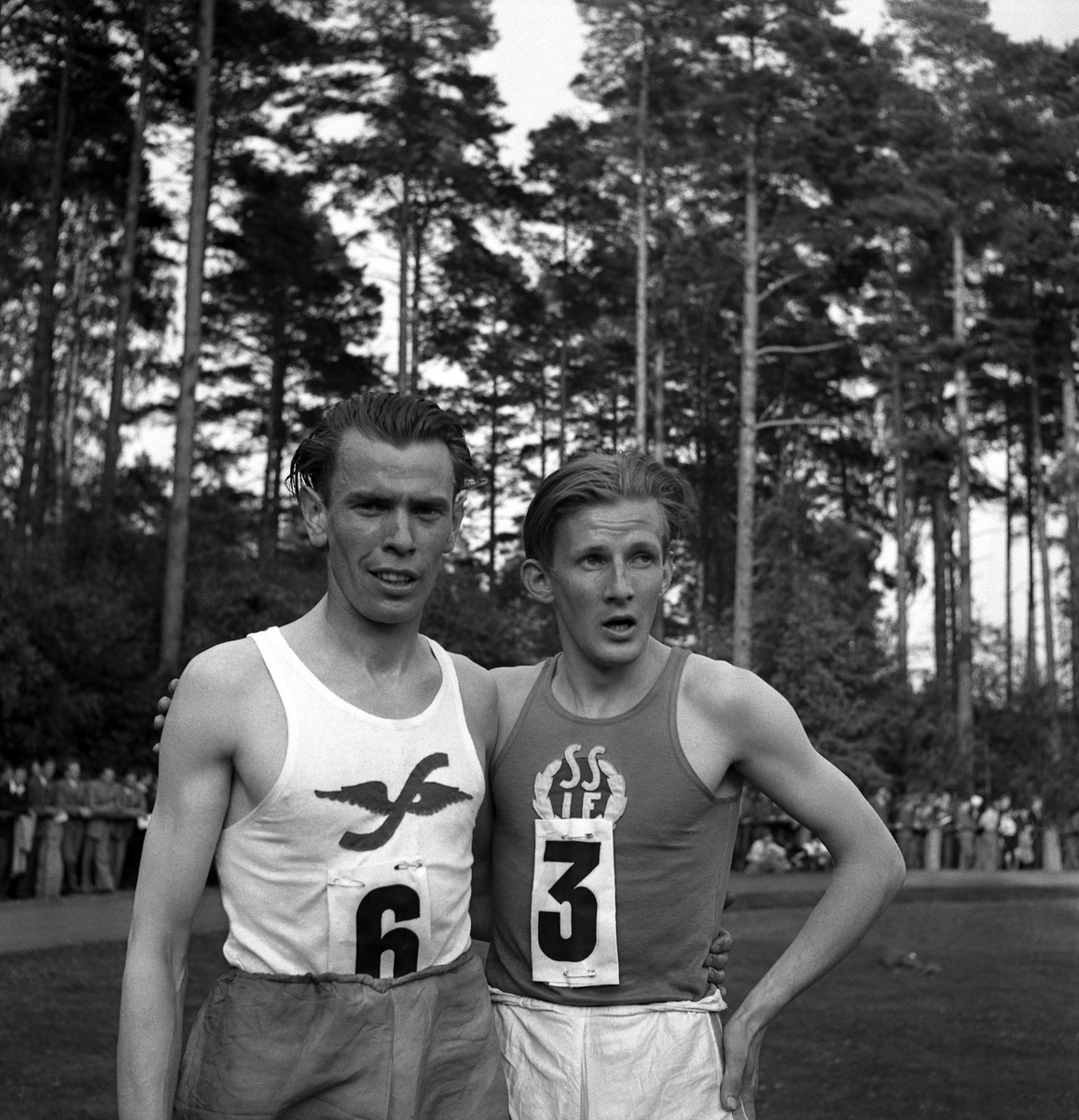 Idrottens dag på Värendsvallen. Två löpare efter ett lopp.