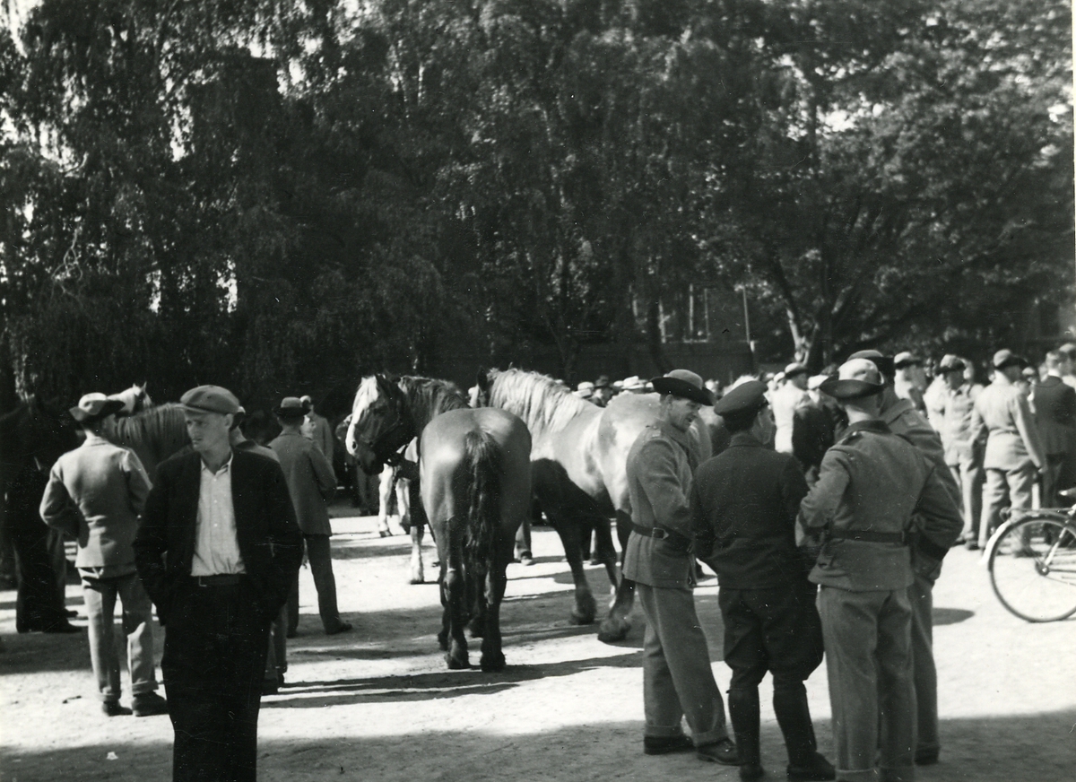 Förstärkt försvarsberedskap i september 1939, Karlskrona. Från uttagningen av hästmaterial på läroverkets gård.