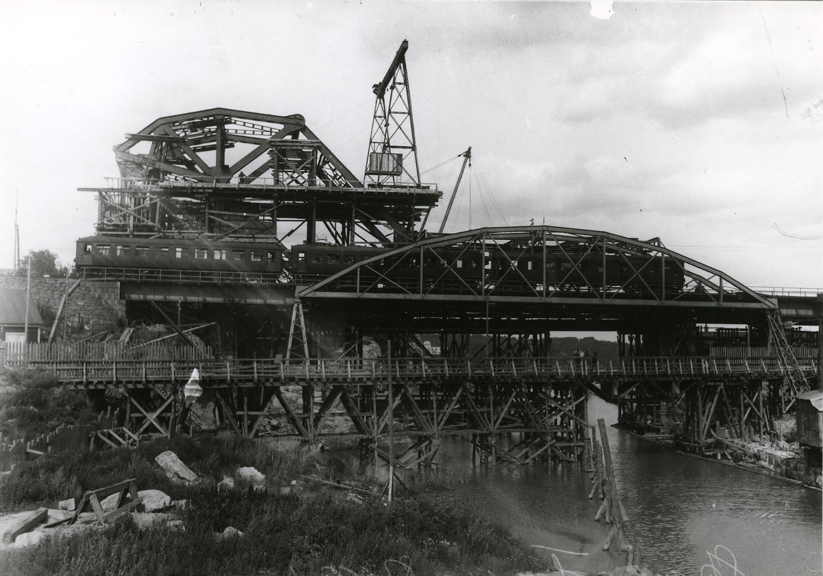Hammarbyleden, Stockholm. Detalj från arbetena med Danvikstullsbron i bakgrunden, 1921.