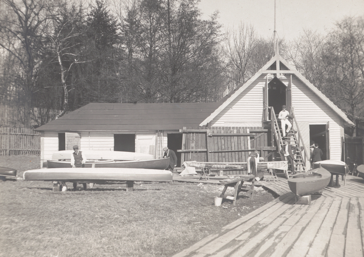 Vårarbete vid FKI:s första klubbhus i Laboratoriehagen vid Djurgårdsbrunnsviken, Stockholm.