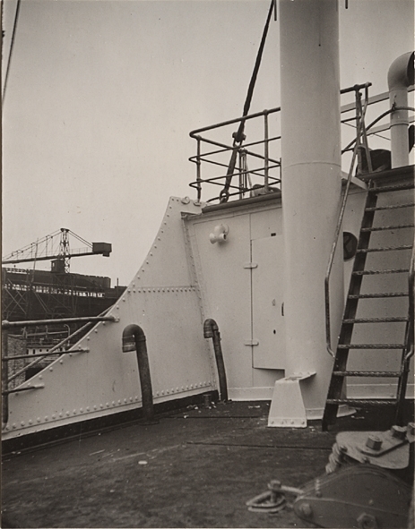 Lastmotorfartyget BRASIL av Stockholm, byggt i Göteborg 1935. Akterkant av backen om babord.