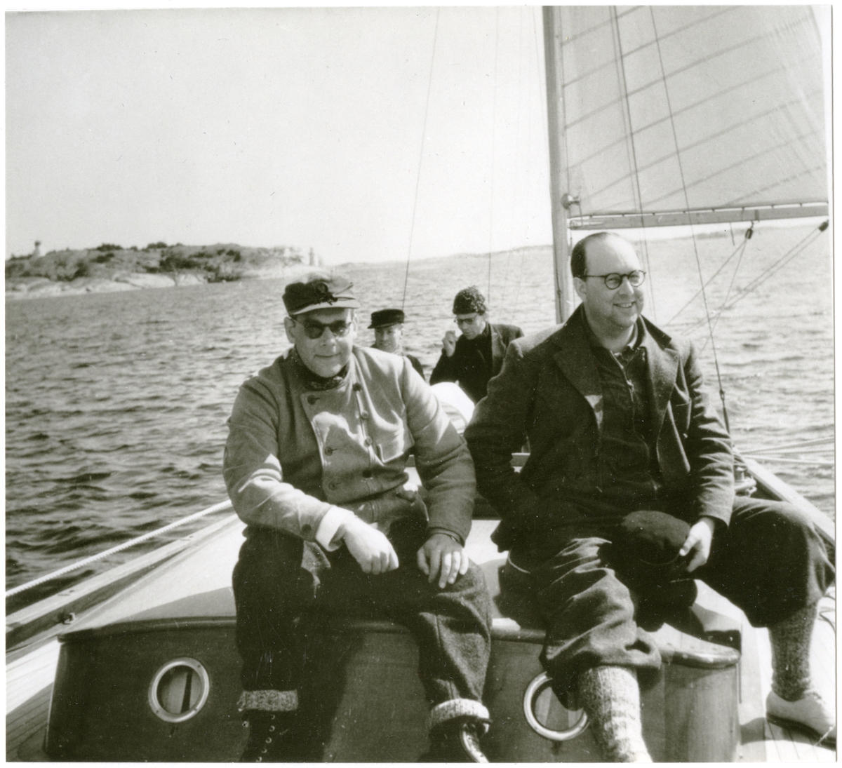[från fotobeskrivningen:] "Ombord på Gösta Åhléns havskryssare MARIBELL. Gösta Åhlén t.h. Tore Holm t.v."
