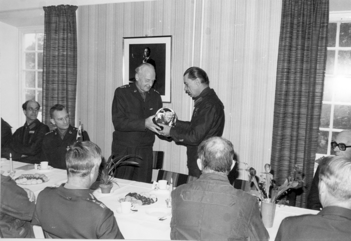 Fanjunkare Nils Jannerstad avtackas av arbetskamraterna på Utbildningssektionen P 10 när han går i pension som C Driftenheten.
