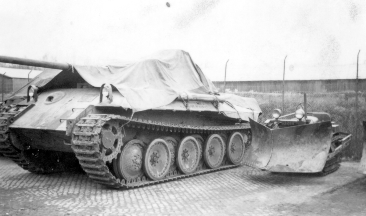 Titel: Tysk stridsvagn Kungstiger uppställd på garageområdet vid P 4 Skövde 1948.