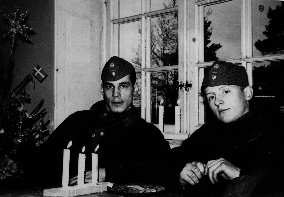 December 1964, vi hade just blivit vicekorpraler, så då passade lägermössan extra bra eftersom den hade gradbeteckning. 113 Eriksson och 220 Sahlén.