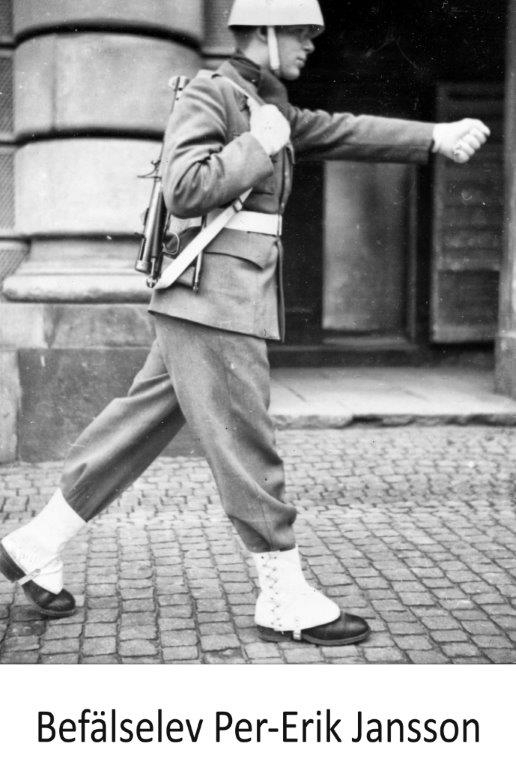 4. komp, plutonchefsskolan hösten 1957. Högvakt på Stockholms slott, befälselev Per-Eric Jansson.