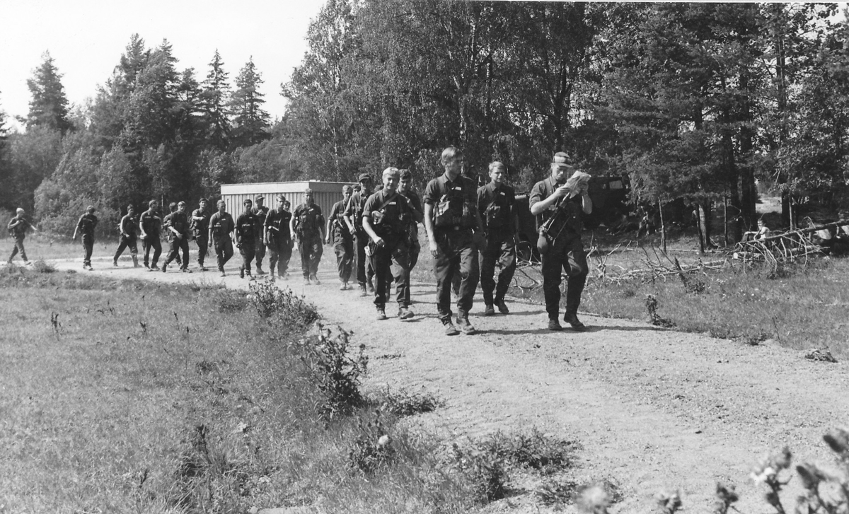 Rast. I täten för 5. komp går till höger lt Olaf Juell-Skielse, bredvid honom fk Per Aschan och bakom dom öfu Jan Johansson.