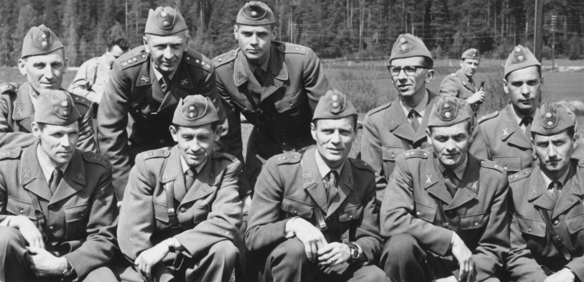 Bakre ledet fr v; fj Arne Gustavsson, fj Erik Larsson, serg Olsson, serg Persson och serg Alf Gustafsson.