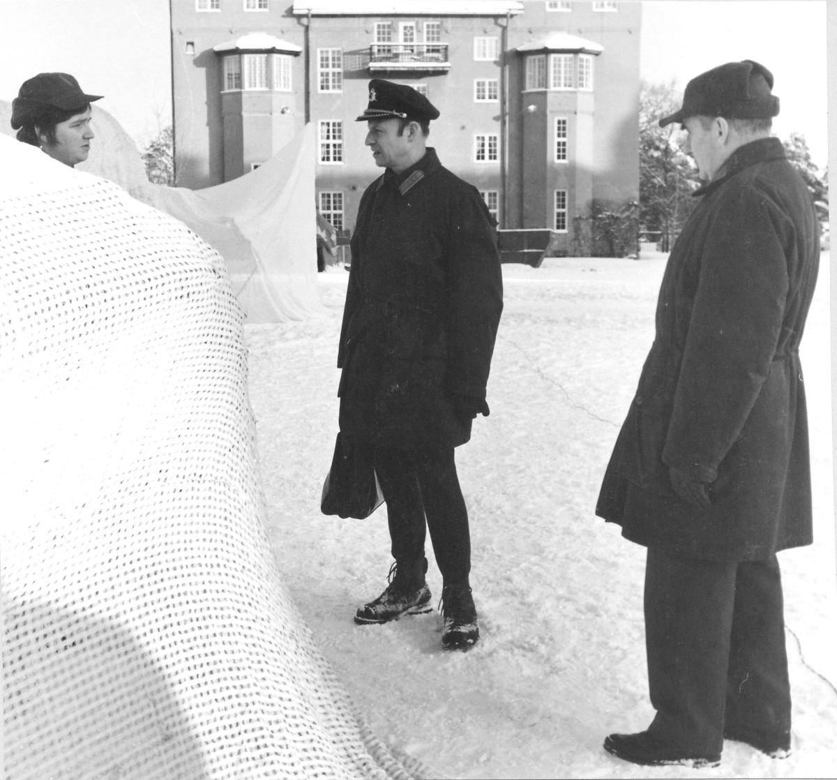 Överste Peyron, från studiegruppen, samtalar med en soldat under överinseende av C P10, överste Henricson.