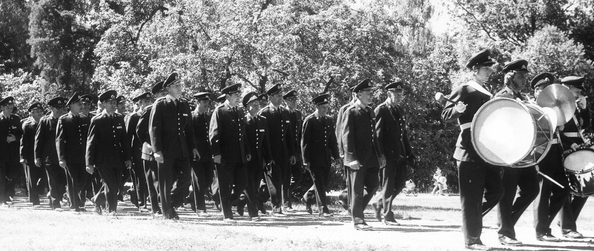 Längre bak syns kn Karl-Åke Bergström, fj Hasse Bendeby, kn Alf Gustavsson, kn Elvir Ahlqvist, lt Peter Tengbrand, fj Sven Gustavsson och kn Jan Mimer.