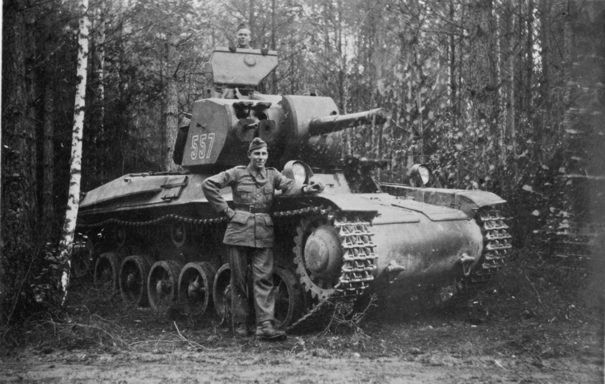 Furir Pelle bredvid 42:an i Dammkärr, okt 1944.
