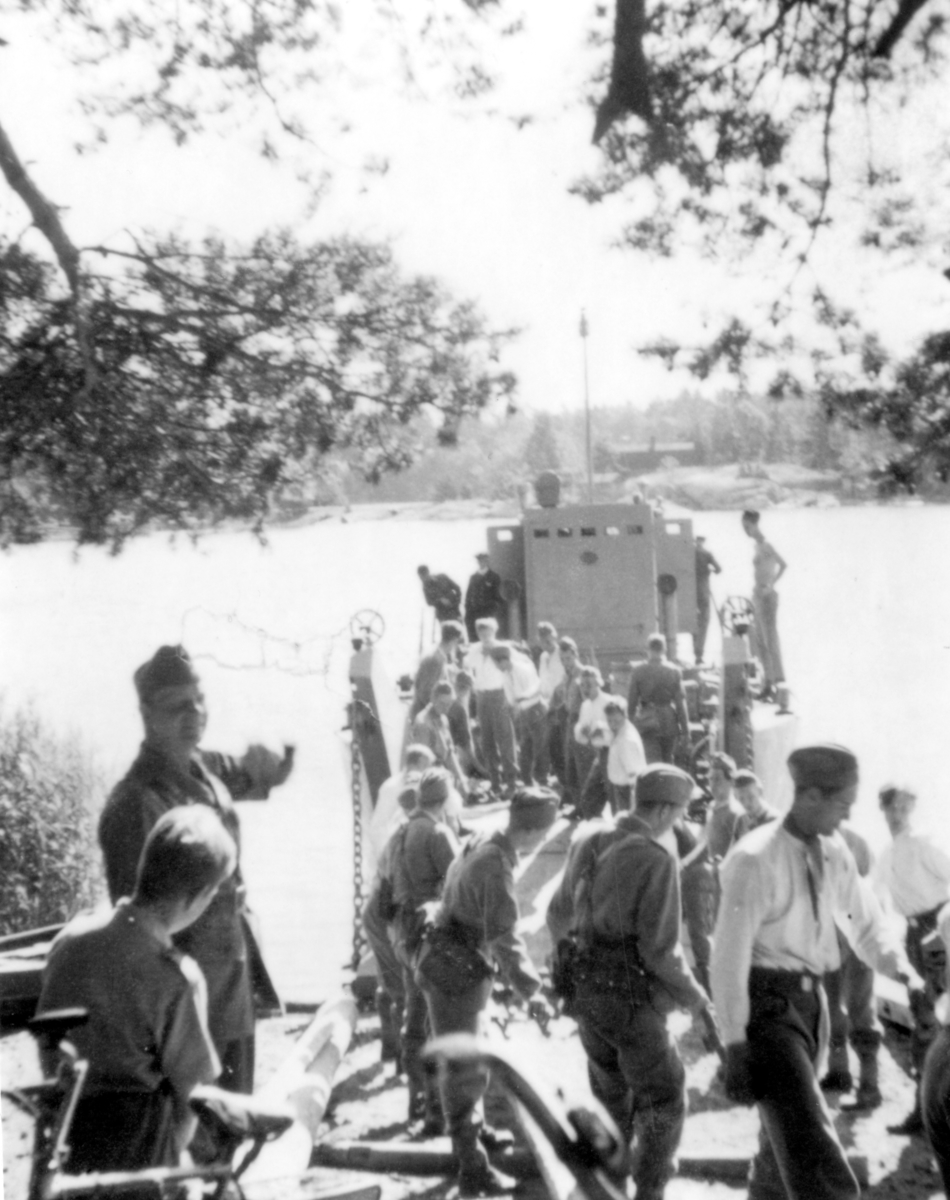 Sergeant Erik "Floda" Johansson, P 3 leder övning avseende lastning av landstigningsbåt på Utö pansarskjutfält.