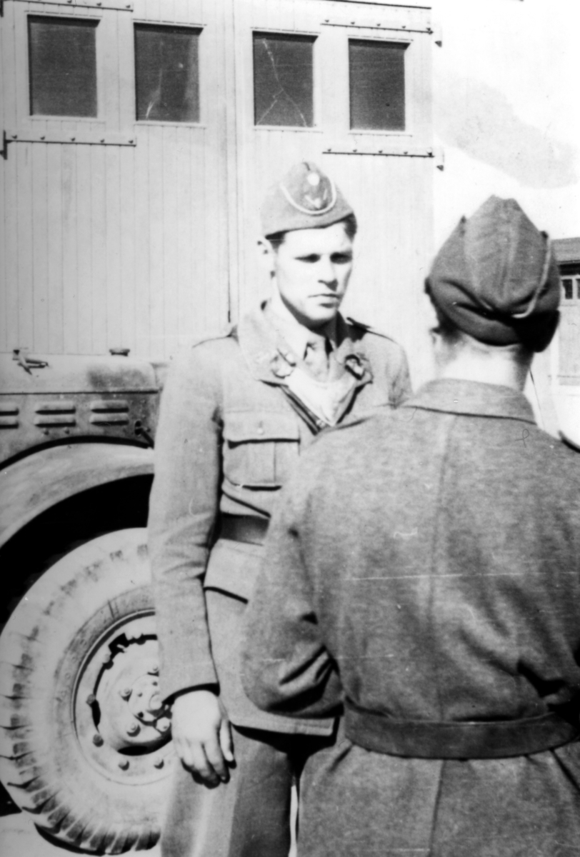 Titel: Sergeant Bergström och furir Eriksson på P 3 garageplan.