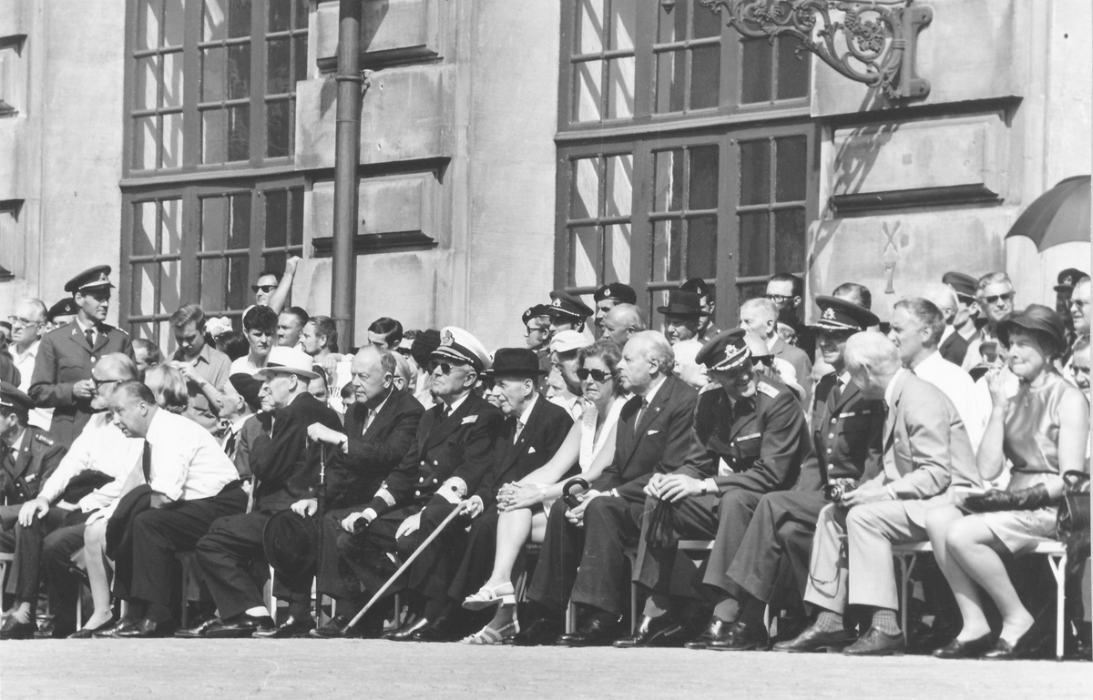 Titel: Högvakt Stockholmsslott Särskilt inbjudna på borggården. General Tord Bonde representerade Konungen