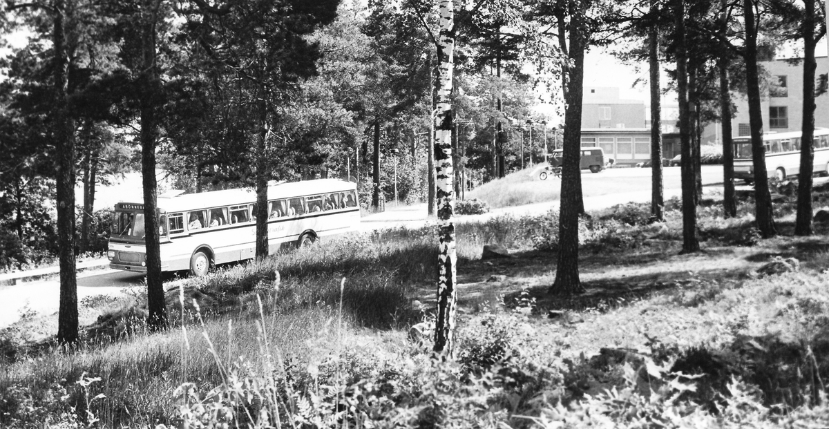 Bussarna på väg mot Sundbyholm. Milostaben i bakgrunden.