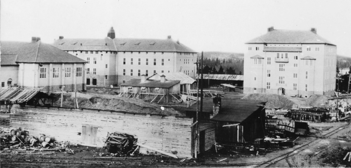 T v ser vi gymnastiksalen (by 9), i mitten kasern 7 och t h kanslihuset (by 1).
