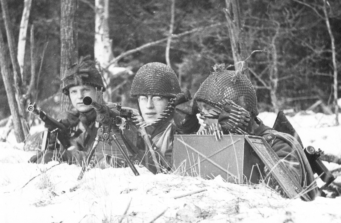 Lägg märke till att kulsprutan är en försöksmodell. Senare blev den belgiska modellen FN MAG 58 fastställd som Ksp m/58.