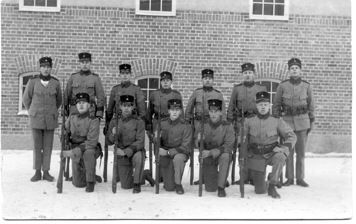 Truppen uppställd med dagkorpralen David Eriksson från Årdala, Södermanland till vänster.