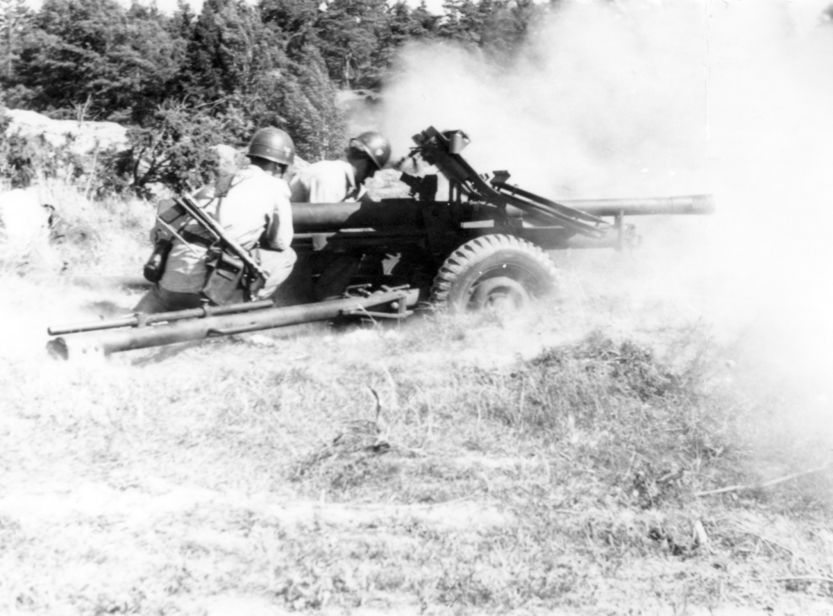 57 mm pansarvärnskanon under eldgivning.