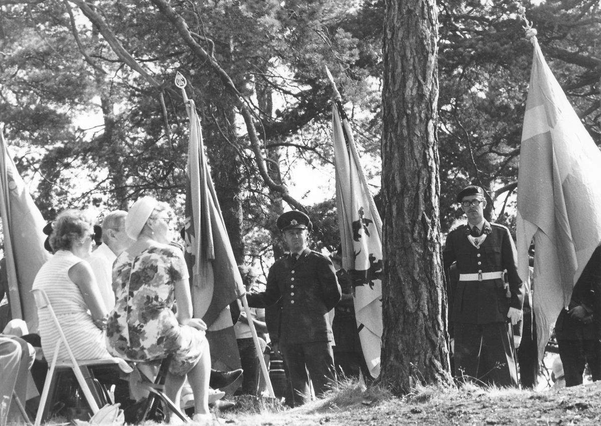 Titel: Högtidligheten vid Skogsö Del av fanborgen och åskådarna vid monumentet.