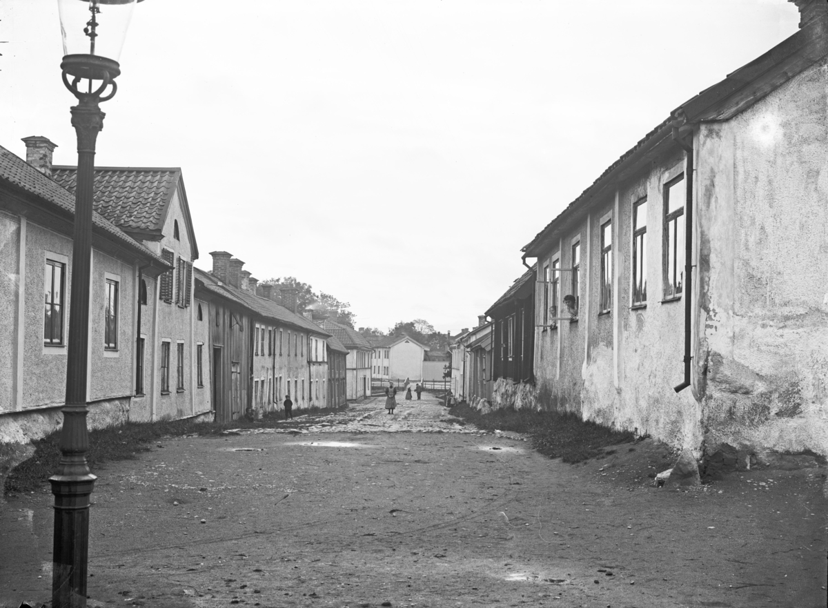 Munksundsgatan, Munksundet, Enköping, vy från sydväst och Klostergatan, troligen 22 september 1908
