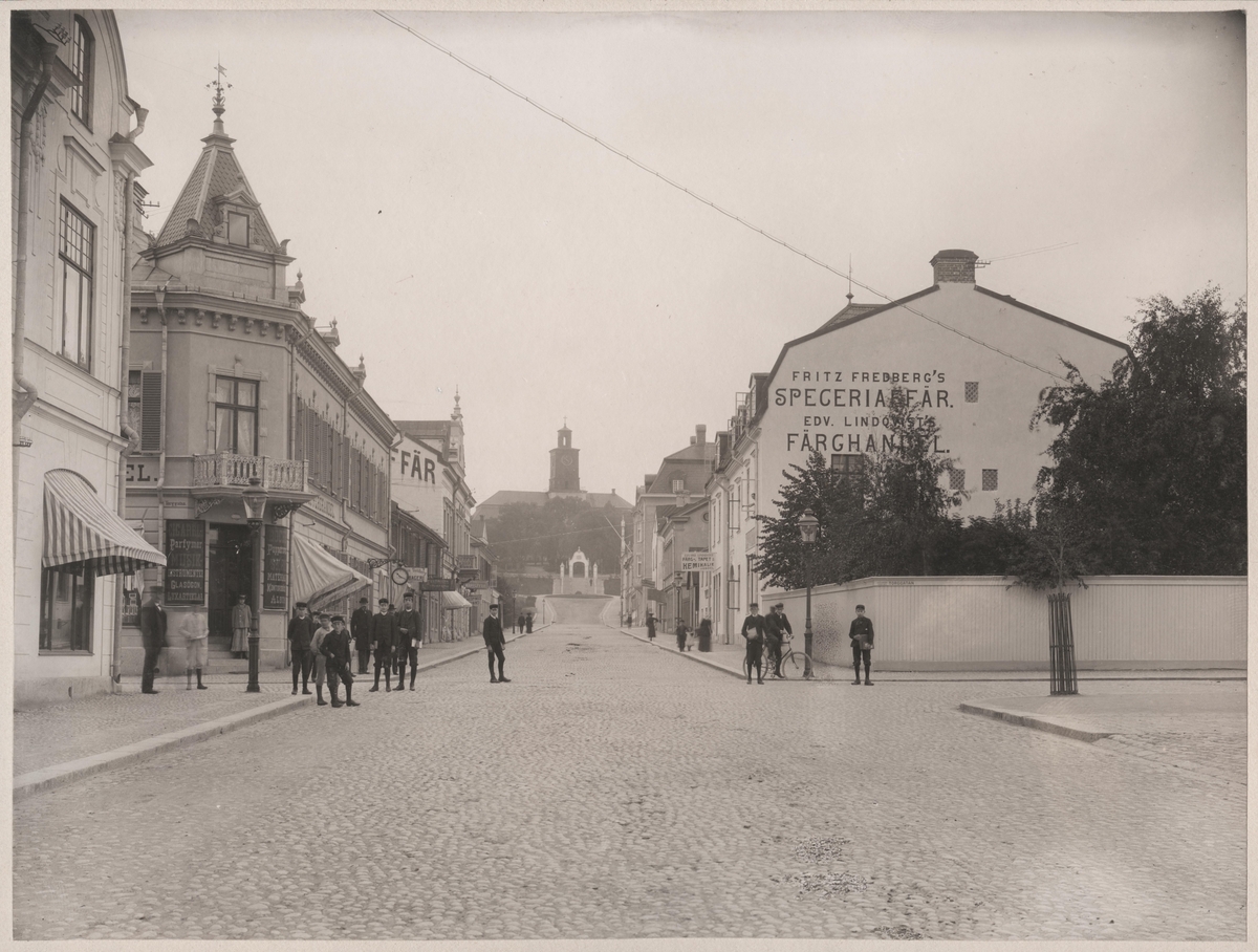 Kyrkogatan från Stora torget, Enköping, vy från sydväst, 1906.