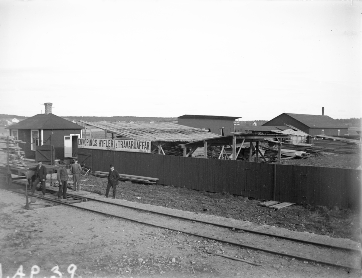 Vy över Enköpings Hyfleri & Trävaruaffär C. A. Berggren, hamnområdet, Enköping