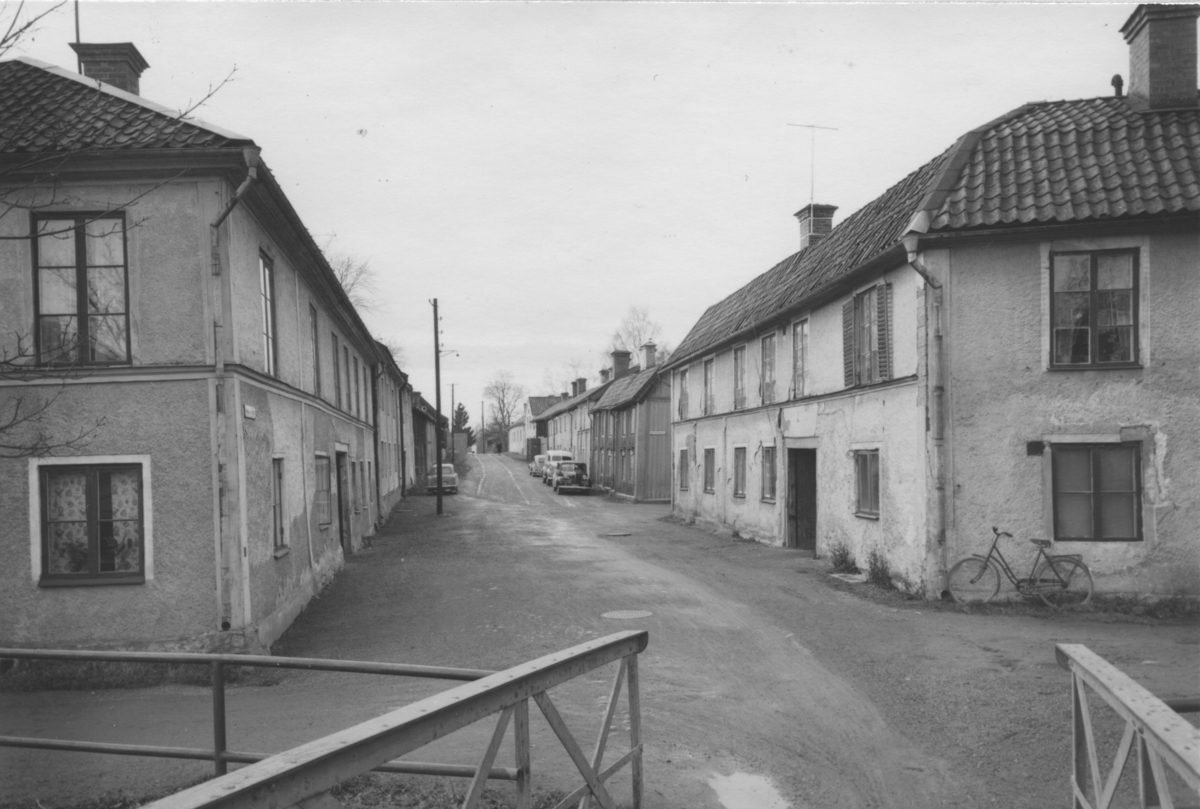 Enköping, Munksundet, Munksundsgatan mot sydväst, från gångbron över ån