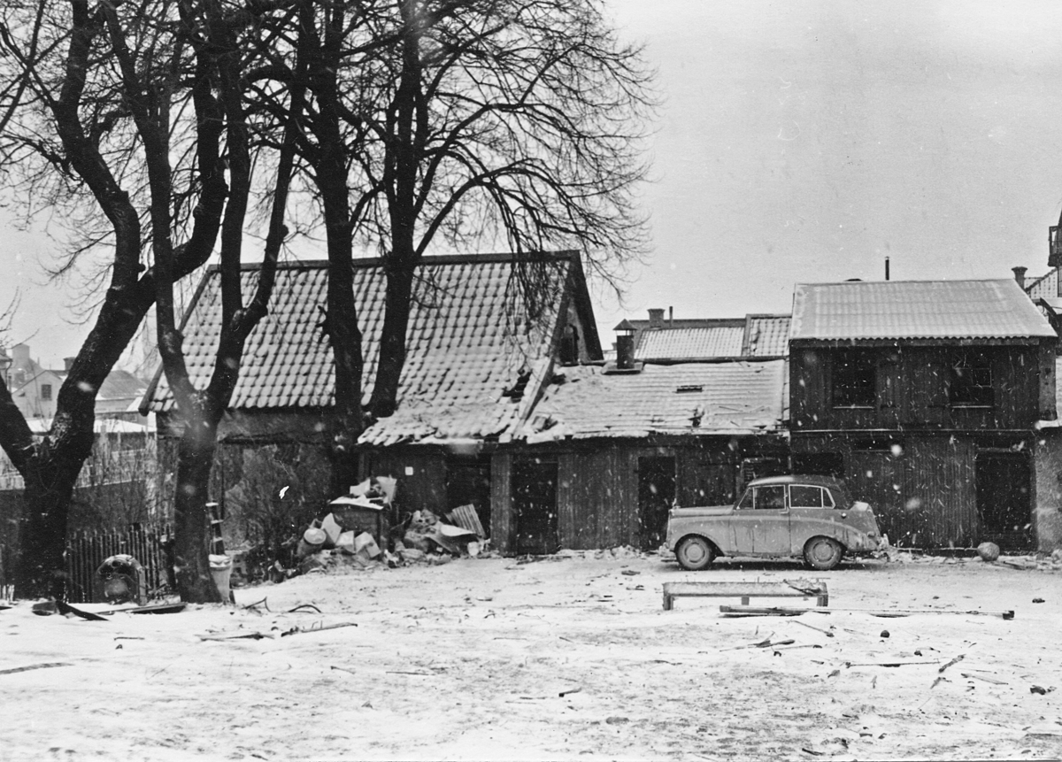 Enköping, kvarteret Apotekaren nr 3, Kungsgatan 17, gårdsbebyggelse sedd från tomt nr 2, mot sydväst
