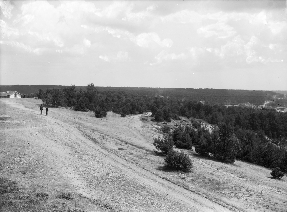 Kyrkåsen, Enköping, vy från dåvarande vattentornet, mot öster. Skymtande till vänster den s.k. Kvarngården, senare adress Åsen 1.