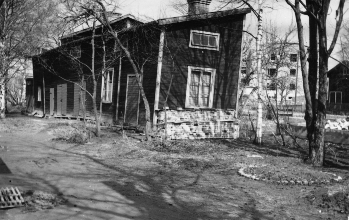 Enköping, uthus stadsägan 205, Westerlundsgatan 12, mot nordost, sannolikt maj 1956