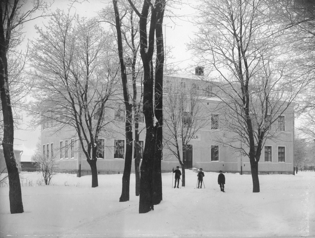Folkskolehus, Strömparterren, Enköping, vy från söder, sannolikt 30 december 1907.