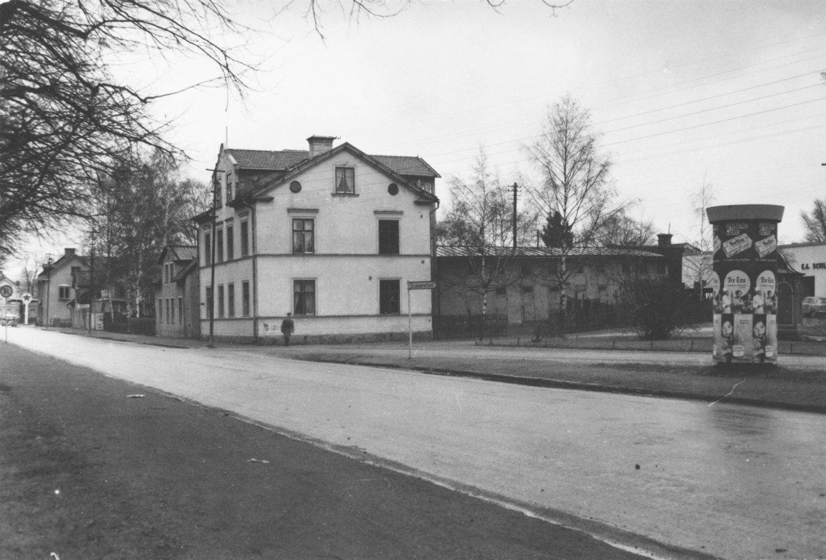 Enköping, Munksundet, kvarteret Färgaren och Munksundstorg från Kungsgatan mot öster.
