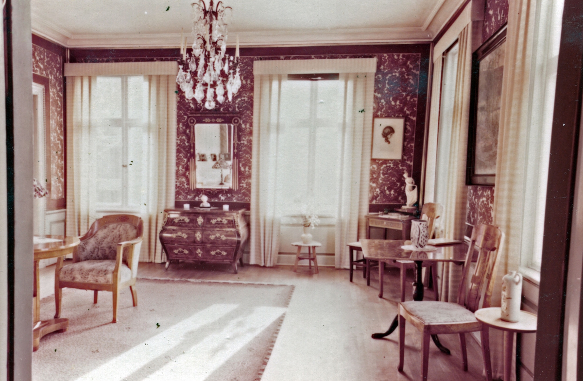 Enköping, kvarteret Borgmästaren nr 4, 1 trappa upp, järnhandlare Jönssons våning, rakt fram fönster mot Kungsgatan. Maj 1957