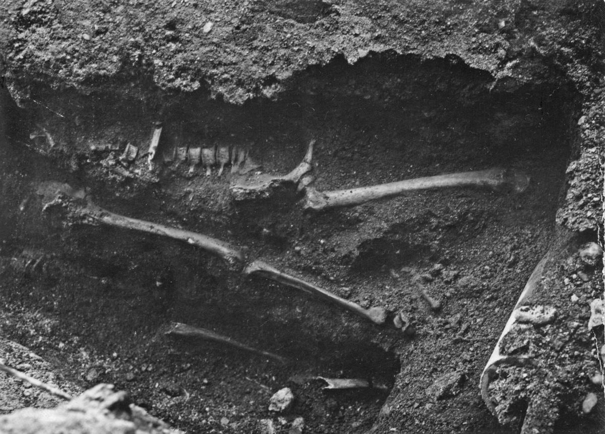 Enköping, kvarteret Kaplanen nr 5, Kyrkogatan 5, medeltida gravplats funnen i trottoaren Park hotell.
