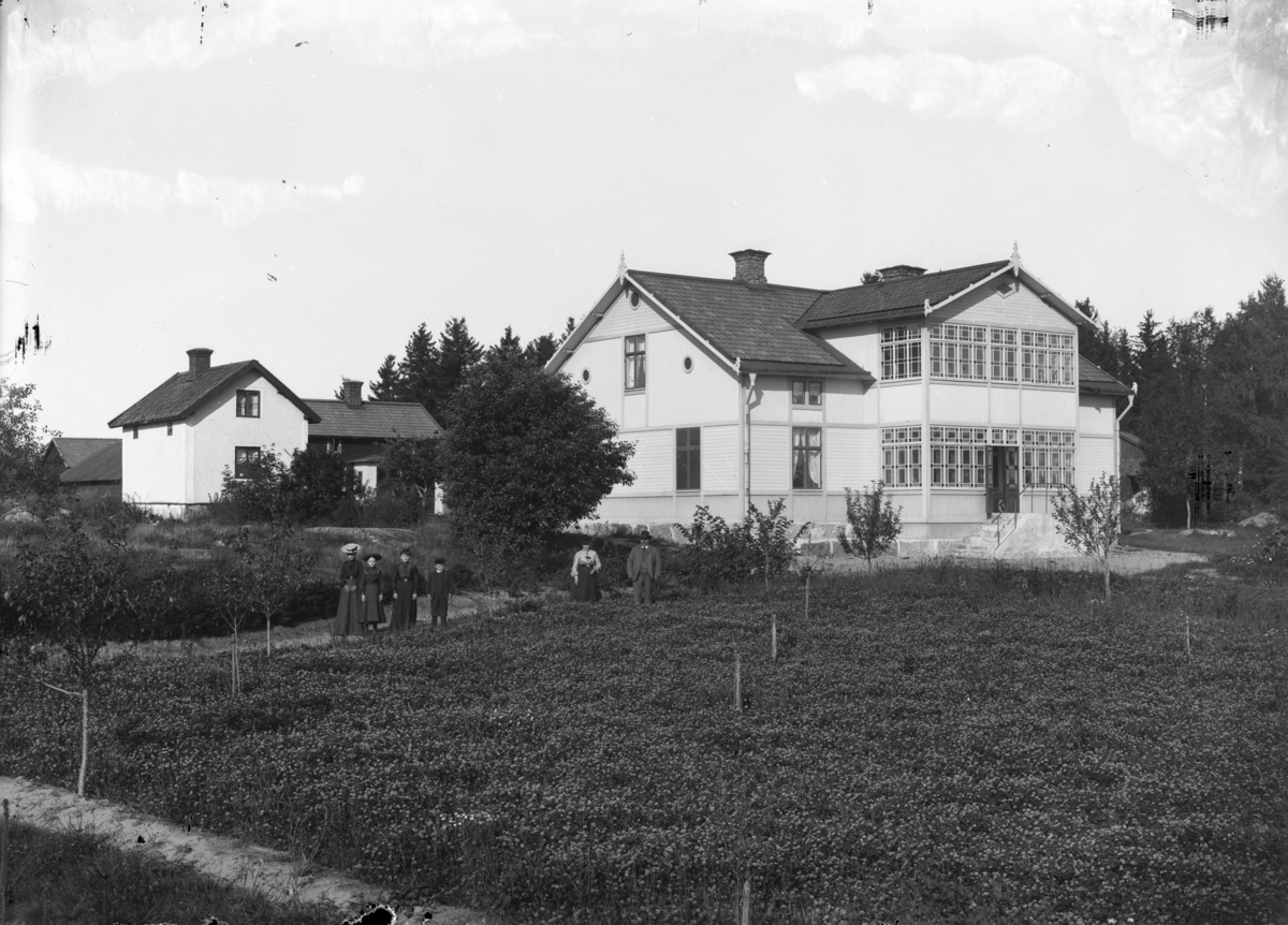Slaktare Kristian Andersson (1856-1908) med familj, Skälby, Vårfrukyrka socken, Uppland. Huset fr.o.m. 1908 Vårfrukyrka fattighus, senare ålderdomshem.