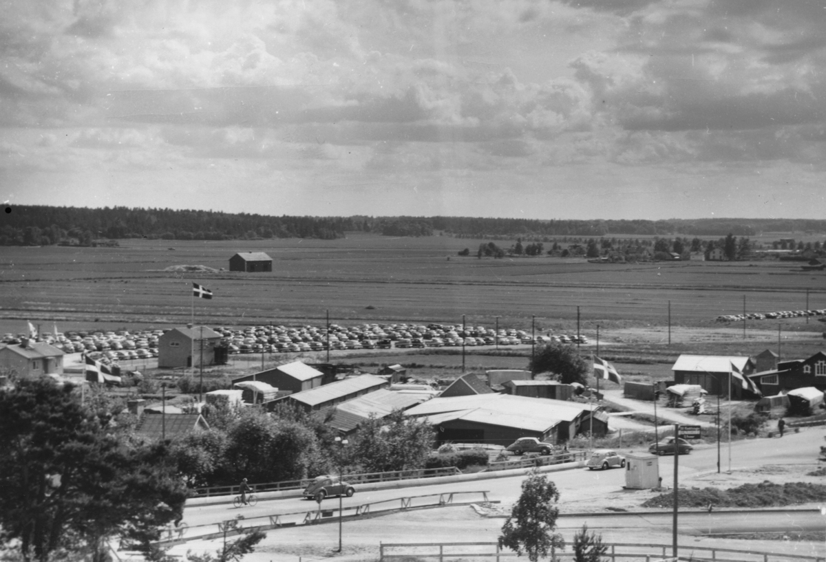 Enköping, Enköpingsutställningen 1955, bilparkering på Korsängen, från Fanna-korset, mot söder