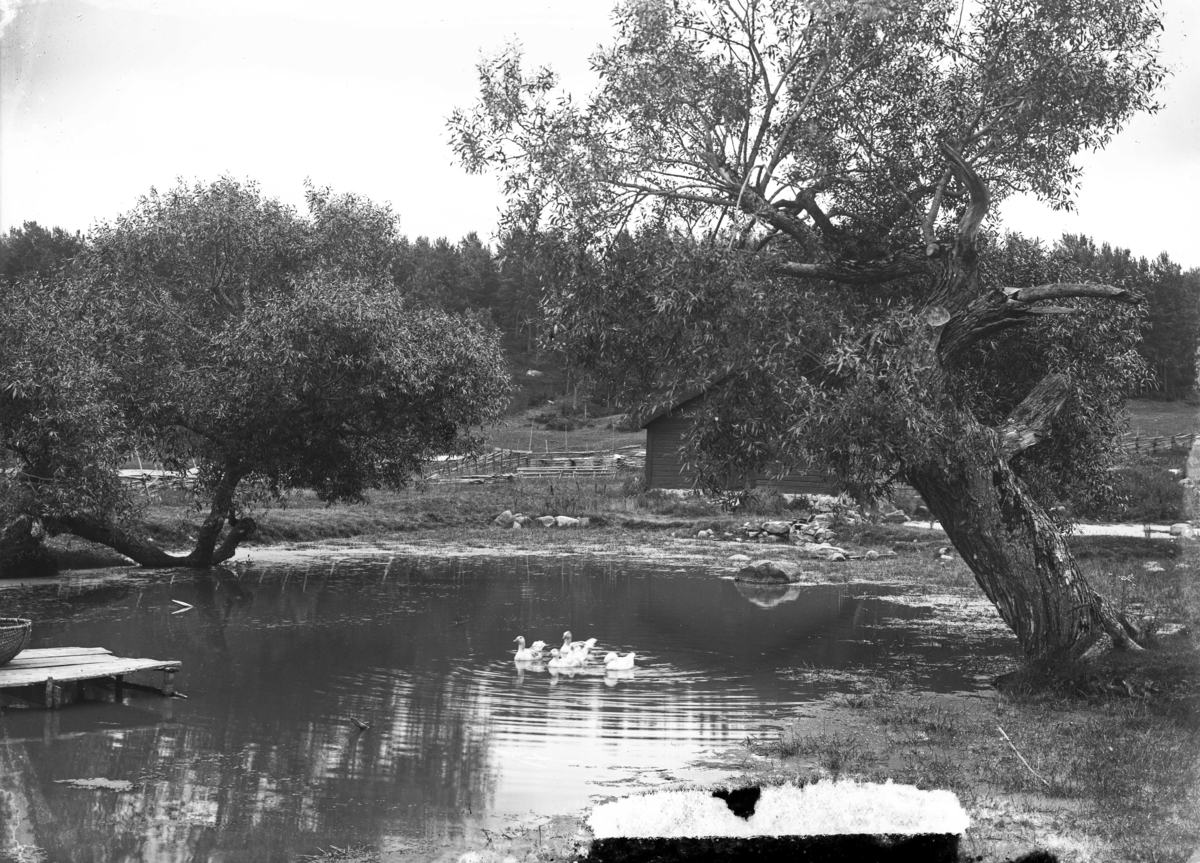 "Parti från Villberga", damm, Villberga socken, Uppland, troligen 7 juli 1913
