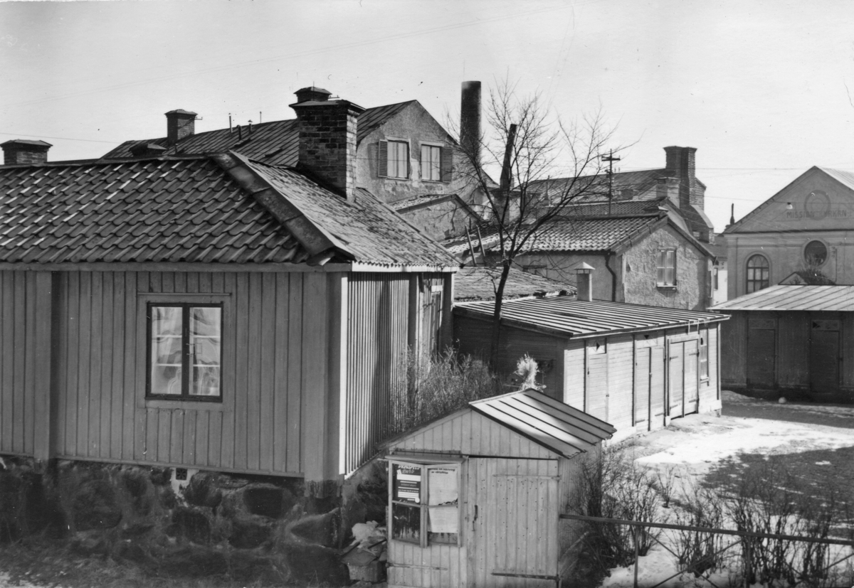 Enköping, kvarteret Kaplanen, gårdsbebyggelse, sett från dåvarande borgmästarexpeditionen, mot öster